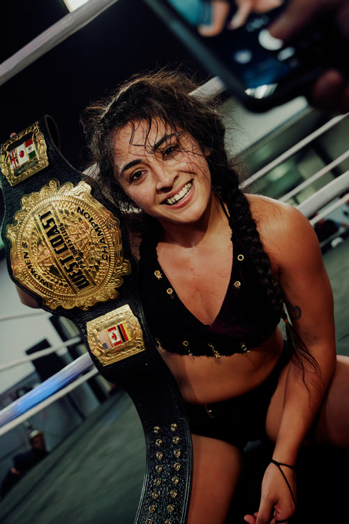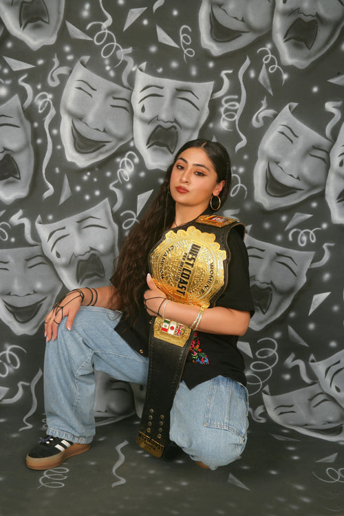 Signed 8x10 print of Johnnie Robbie in her garments. A stunning cultural portrait of a champion.